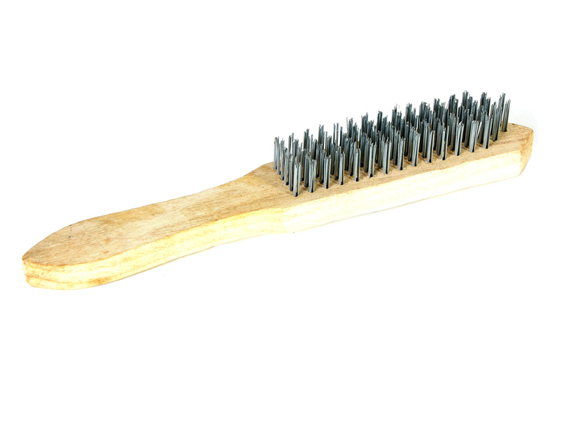 Металлическая 5-рядная щетка имеет деревянную основу. Благодаря стальной щетине щетка применяется для чистки металлических поверхностей.